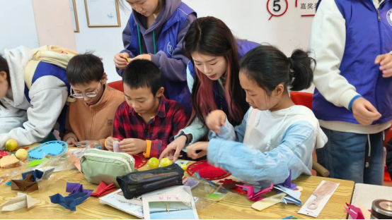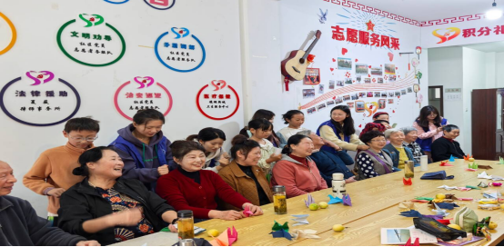 巧艺承情,共绘传统韵味。“旧艺新传+节日创想”双轨手工环节趣味盎然。爷爷奶奶们化身“非遗导师”,现场演示“千纸鹤”折法,一边折叠一边分享过往岁月里的重阳趣事,将对晚辈的成长期许藏进每一道折痕;青少年们认真临摹,在指尖流转中承接传统智慧。与此同时,志愿者分发含菊花、茱萸等重阳传统纹样的手工材料包,引导小朋友将节日意象融入创作,鼓励他们主动向长辈请教设计思路,让重阳文化在动手实践中落地生根。