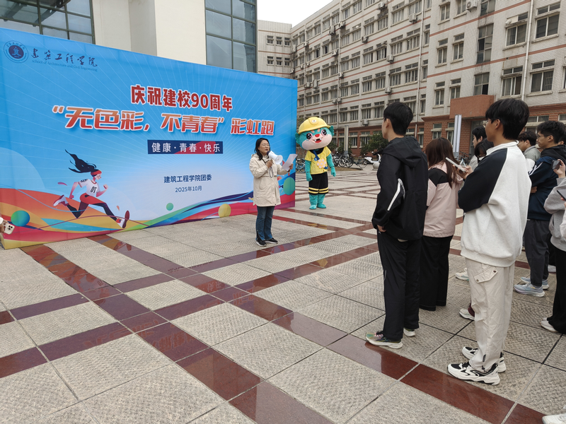 时值金秋,丹桂飘香。在学校体育文化月蓬勃开展、喜迎建校90周年之际,10月26日下午,建筑工程学院“无色彩,不青春”彩虹跑活动在C座楼前广场活力启幕。本次活动将体育健身、美育熏陶与立德树人深度融合,学院党委副书记吴敏、团委负责人程亚运全程参与,与全校360余名学子共同以一场绚丽多彩的青春奔跑,献礼母校九秩华诞,生动践行“三全六专”育人实践。