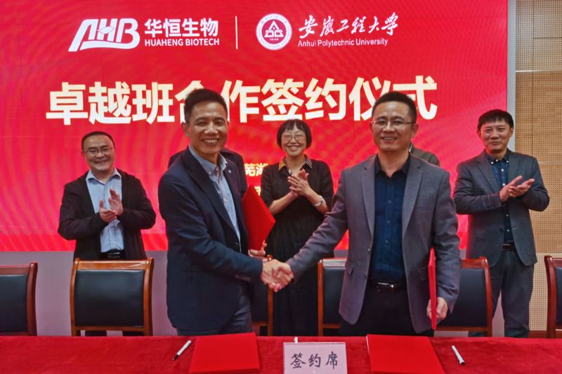 10月21日,学校与安徽华恒生物“卓越班”签约启动仪式在生物与食品工程学院虚拟仿真中心举行。安徽华恒生物科技股份有限公司副总裁刘忠诚,学校副校长周虹屏出席,教务处相关负责人,生物与食品工程学院党政领导、各专业负责人、专业教师代表、“卓越班”班主任、卓越班2022级、2023级学生代表参加活动。