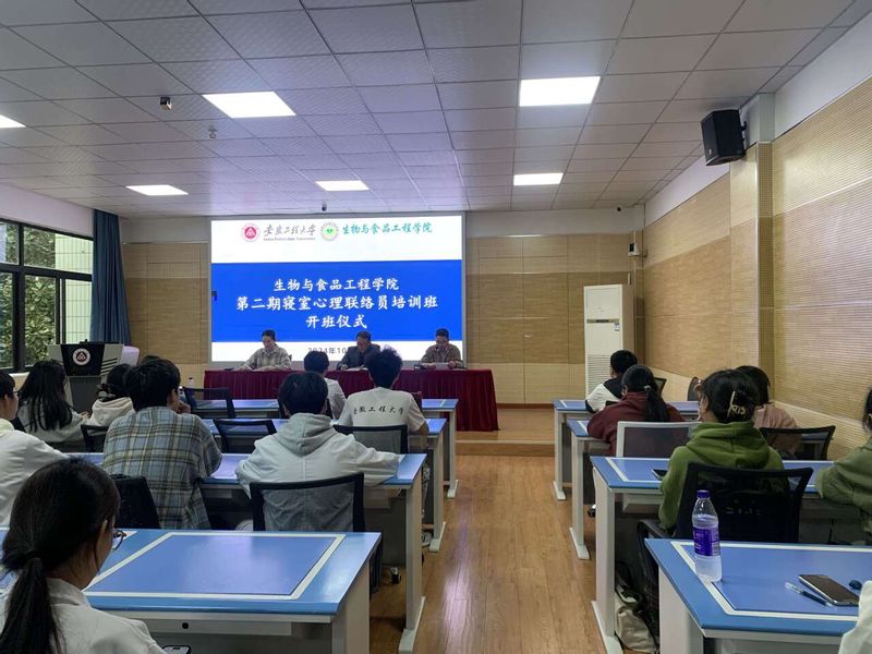 为巩固心理健康预警防控四级体系,打通信息传递最后一公里,充分发挥寝室成员在朋辈帮扶中的积极作用,10月30日下午,生物与食品工程学院第二期寝室心理联络员培训班在虚拟仿真中心正式开班。学院党委副书记王彦青、辅导员胡晓康及52名学员参加开班仪式。仪式由学院心理联络员钟莉娟主持。