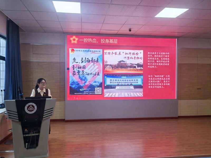 左倩倩对本次微党课大赛进行了总结和点评,从微党课选题、授课内容、宣讲形式、语言表达和呈现效果等方面进行了细致地分析。她希望各位选手能够以本次比赛为契机,更加精准的把握“微党课”的含义和特点,总结经验,取长补短。同时,她勉励同学们要牢记习近平总书记在全国教育大会上对青年学生的教诲,立报国强国大志向、为强国建设、民族复兴挺膺担当,贡献青春力量。