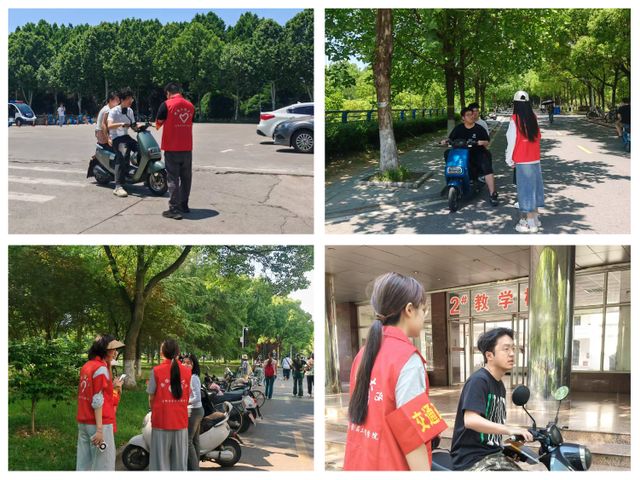 志愿者们在主干道交叉口实施动态管控,协助保卫处老师疏导交通,面向师生开展一盔一带宣传教育。他们以实际行动践行党员志愿服务精神,展现出新时代研究生党员良好的精神风貌。