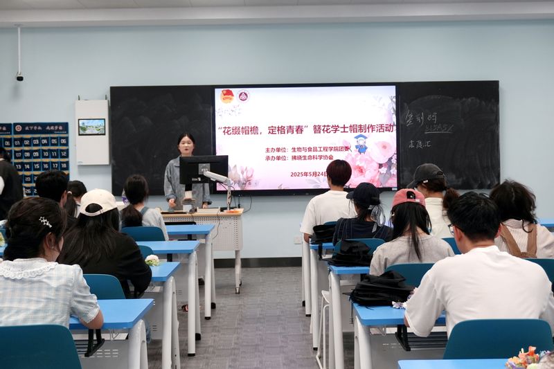 【美好生活种子行动】生物与食品工程学院举办“花缀帽檐,定格青春”簪花学士帽制作活动