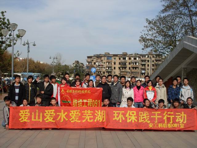 首先,班委和部分同学在赭山公园大门口拉开了“爱山爱水爱芜湖,环保践于行动”的条幅,向游人宣传环保知识,号召人人行动起来,保护环境,从我做起。广大游人纷纷响应并踊跃的在横幅上签字,表示他们对环保的支持。接着,同学们将环保践行于行动,自发的在赭山公园内捡拾垃圾,用自己的实际行动宣传环保理念。